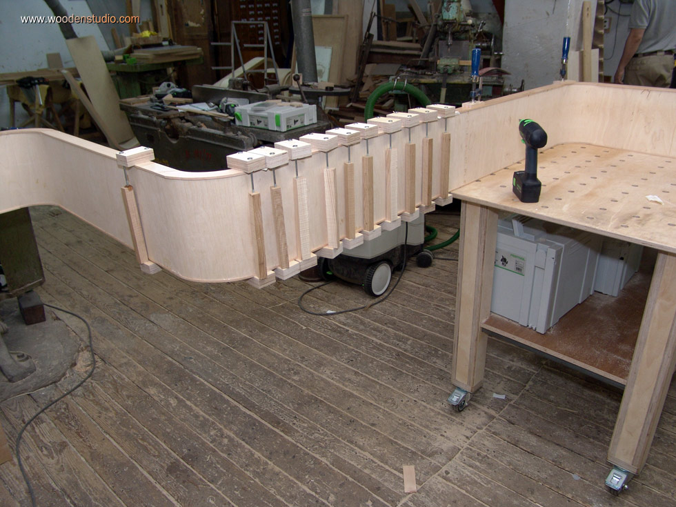 Может это уже кто-то придумал. Я дошел до этой конструкции сам. Услилие, которое создает шпилька Ф6 - тонна. В струбцине их две. Шпилька может быть длиннее (или срастить неск. коротких шпилек с помощью соед. гаек) - тогда можно склеить и столешницу вне мастерской. Детали на одну струбцину - 2 прижимных брусочка, 2 куска шпильки нужной длины, 4 шайбы, 4 гайки.Обратите внимание, что прижимные брусочки стоят на скос - это всегда обеспесивает невыход из плоскости склеиваемых досок.Если клеите столешницу, подложите вдоль шпильки (к плоскости изделия) ровный брусок, или продентьте шпильку в водопроводную трубу соотв. длины, затем выровняйте изделие в лежачем положении подкладками по уровню - ровная плоскость обеспечена.Если в чем неправ, пишите.Пользуюсь, доволен.PS. Не забудьте 2 ключа на 10